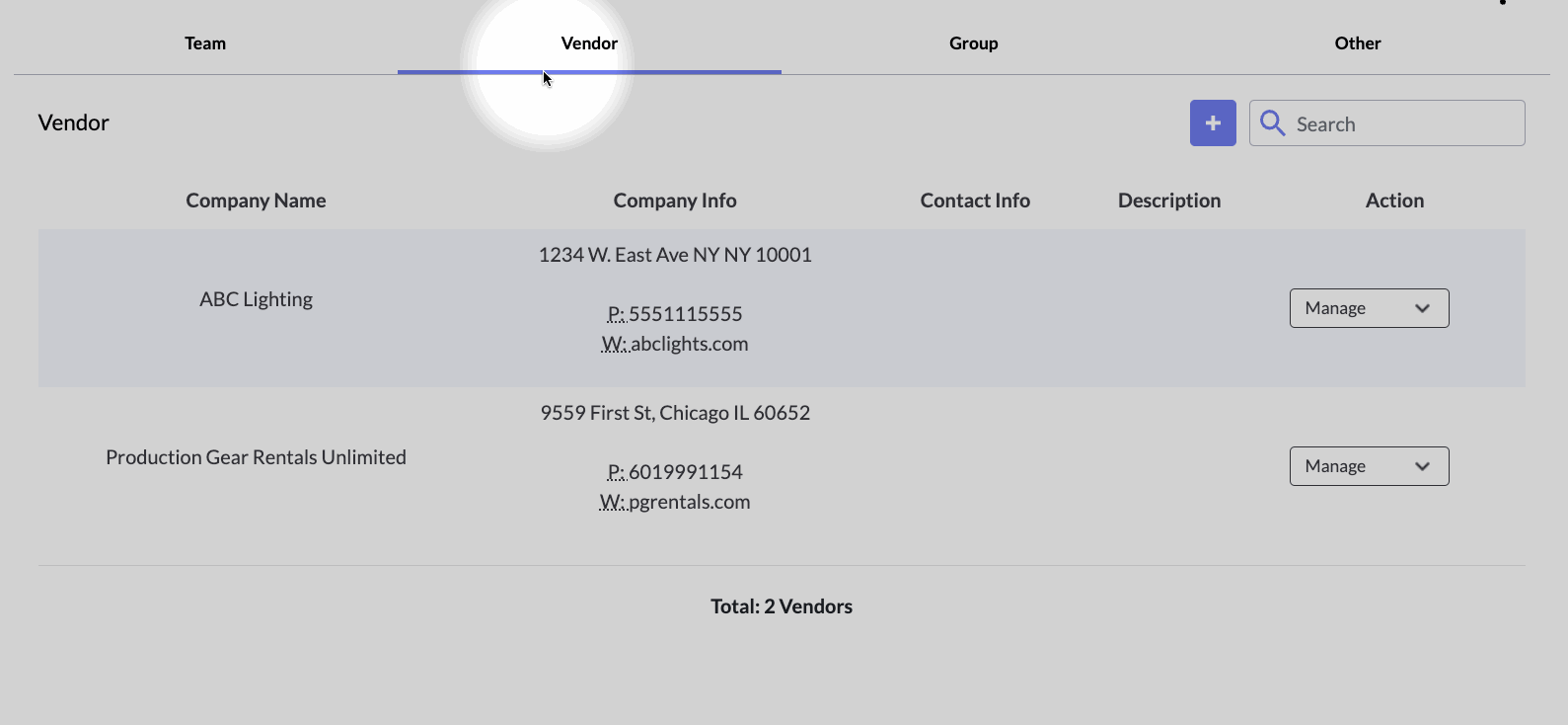 Navigate to the Vendor Tab: Simply click on the purple “+” button.