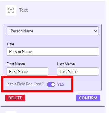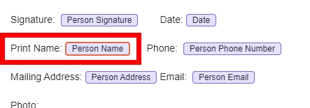After adding legal language, navigate to the appropriate spots and select the corresponding field from the sidebar.